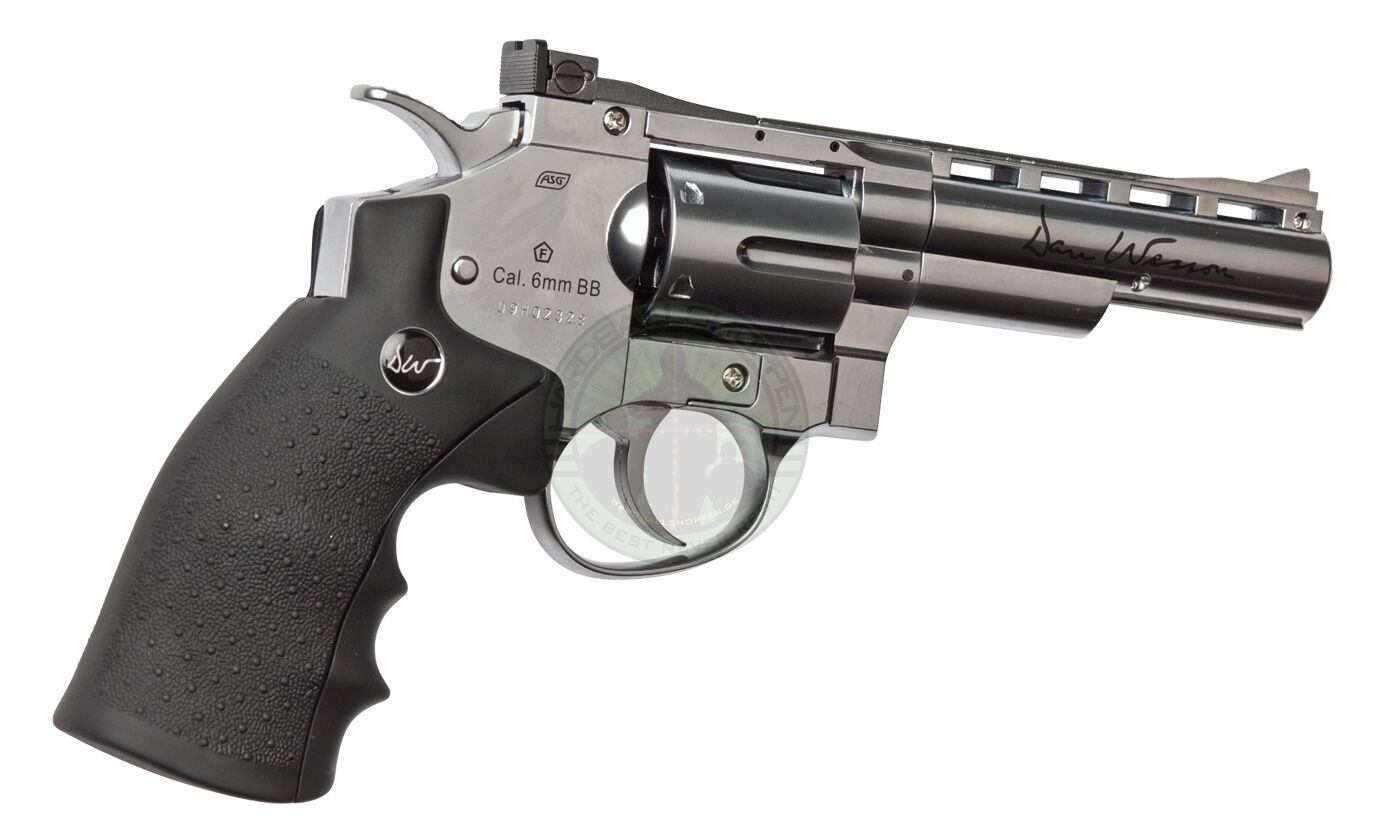 Denne hårdtskydende revolver føles rigtig tung og lækker. Den har tromle med 6 patroner der drejer rundt når man skyder.
