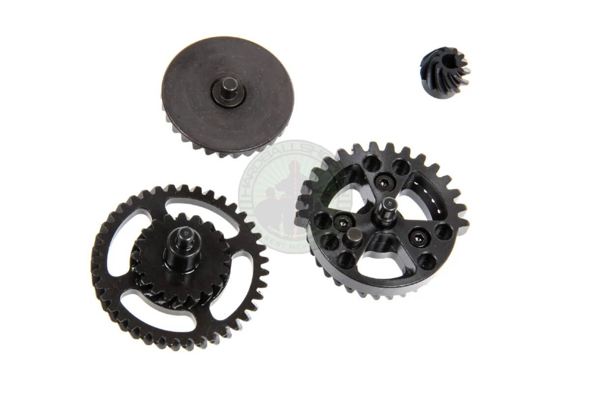 A set of helical gears machined using precision CNC machines. The highly accurate machining has a positive effect on the operation of the mechanism, improving performance, reducing noise and lowering power consumption. Gears The gears have been reinforced and have an improved axle.